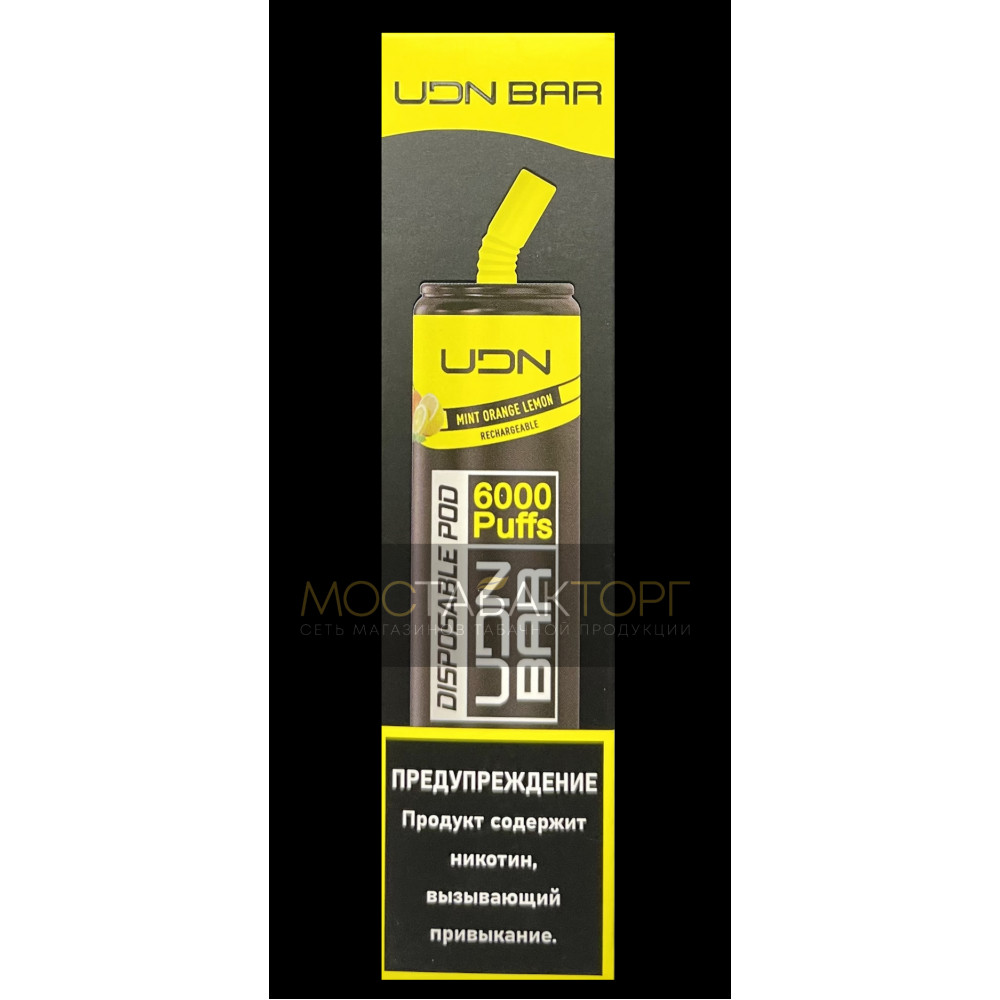 UDN видыUDN BAR 6000 UDN вкусыМята Апельсин Лимон UDN количество в блоке10 шт